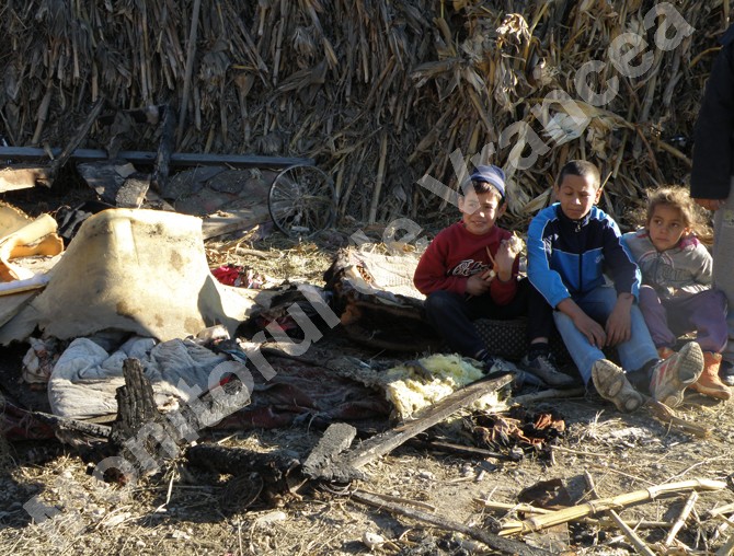Totul s-a întâmplat săptămâna trecută, înainte de ziua de Sfântul Nicolae, în jur de ora 11.00. Costinel, în vârstă de 21 de ani, cel a cărui cameră s-a făcut scrum, era plecat la muncă, iar soția lui, Marinela, de 19 ani, împreună cu fetița lor, Cătălina, de doar un an și șapte luni, se duseseră la bunica acesteia după niște detergent. „Nu știu ce s-a întâmplat, doar că în urma lor, într-o clipită, a luat foc! Am sărit cu toții, au venit și vecinii, am chemat pompierii și până la urmă a fost stins focul. Numai că n-a mai rămas absolut nimic. Le-a ars tot ce aveau, mobilă, haine, calculatorul altui nepot luat prin programul ăla de la școală, plus că a ars și certificatul de naștere al fetei. Nu mai au nimic, decât ce-i pe ei. Cu atât au rămas…”, a spus Costel.